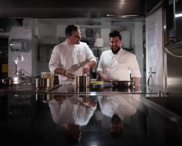 Matteo Metullio (Harry´s Piccolo Grand Hotel Duchi d´Aosta, Triest) arbeitete nach seiner Ausbildung im Hotel Rosa Alpina in St. Kassian (Südtirol) ab 2012 als Souschef im „La Siriola“ im Hotel Ciasa Salares (ebenfalls St. Kassian), wo er ein Jahr später Küchenchef wurde und seinen ersten Stern erhielt, als jüngster Küchenchef Italiens. 2017 folgten der zweite Stern und drei Hauben. Seit 2013 arbeitete er dort mit Davide de Pra zusammen. Beide sind von der außergewöhnlichen Stärke ihrer Verbindung überzeugt und beschließen 2018, ein neues gemeinsames Projekt im Herzen von Triest zu starten: Harry´s Piccolo. Schon 2019 verleiht ihnen der Michelin den ersten Stern, der zweite Stern folgt im November 2020, außerdem werden sie ausgezeichnet mit 4 Hauben und dem Preis „Bester Koch“ des Identità Golose Guide 2022. Sie machten „Harry´s Piccolo“ zum besten Restaurant von Triest. Nach dem Aperitif mit ZEITGEIST, dem ersten Wildwiesen-Aperitif der Welt mit regionaler Verwurzelung, von der Brennerei Ziegler, präsentieren Frank Schönleber 2022 Monzinger Niederberg Riesling 1G VDP.ERSTE LAGE + 2017 HALENBERG Riesling Auslese VDP.GROSSE LAGE, Weingut Emrich-Schönleber (Nahe), Bernd Spreitzer (Rheingau) aus seinem Familienweingut 2020 Wisselbrunnen GG VDP.GROSSE LAGE + 2018 Oestricher Lenchen Eiserberg Spätlese 303 VDP.GROSSE LAGE, Jörg Rebholz präsentiert 2018 Chardonnay, Magnums + 2019 Siebeldinger Spätburgunder vom Muschelkalk VDP.ORTSWEIN, Weingut Ökonomierat Rebholz. Aus ihrem Weingut Marchesi di Barolo zeigt Valentina Abbona 2021 ALBA pi cit (Blend of Nebbiolo + Barbera) und 2018 Barolo Cannubi. Michael Silacchi, winemaker des weltberühmten Weinguts OPUS ONE, ist aus Kalifornien eingeflogen und präsentiert zum Hauptgang OPUS ONE Ouverture und OPUS ONE 2019.